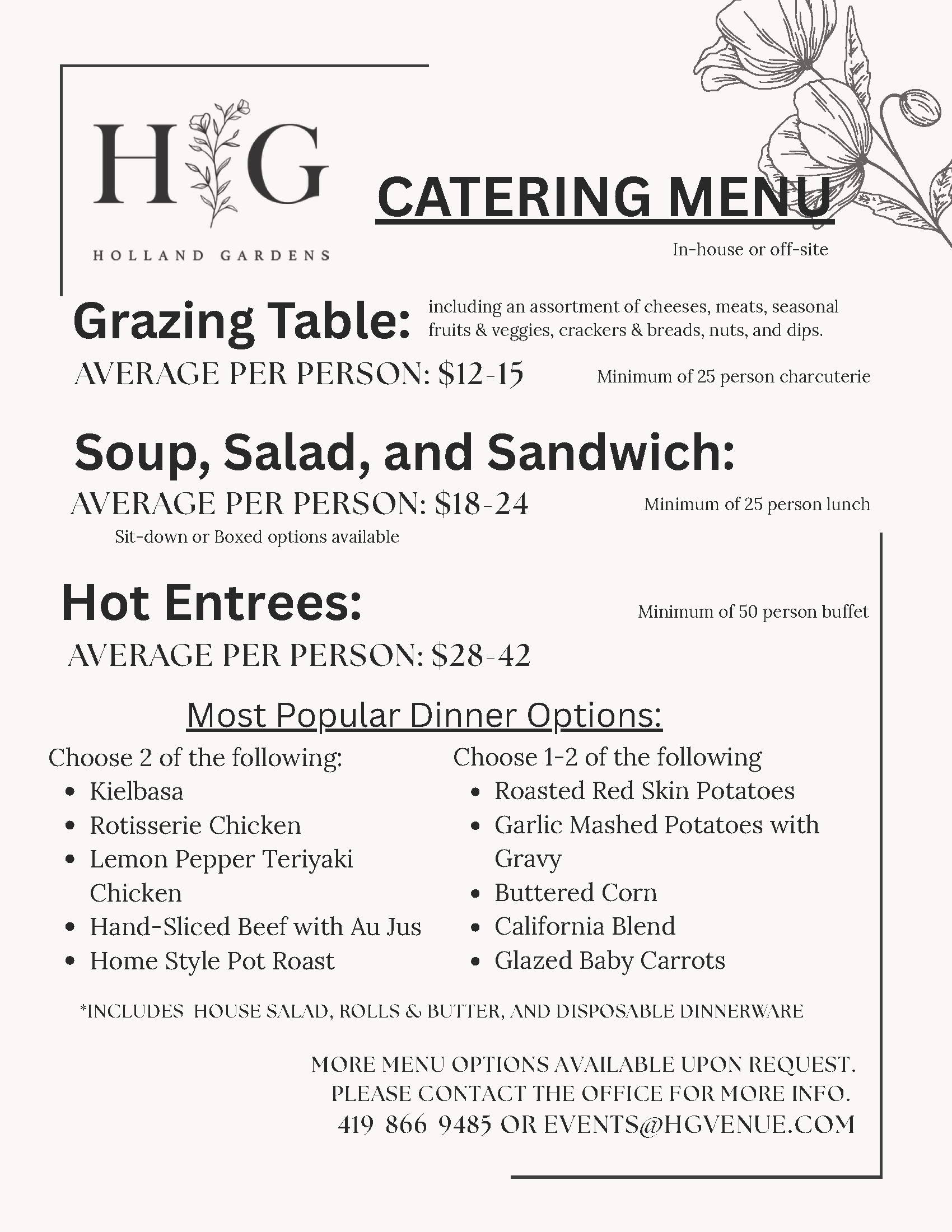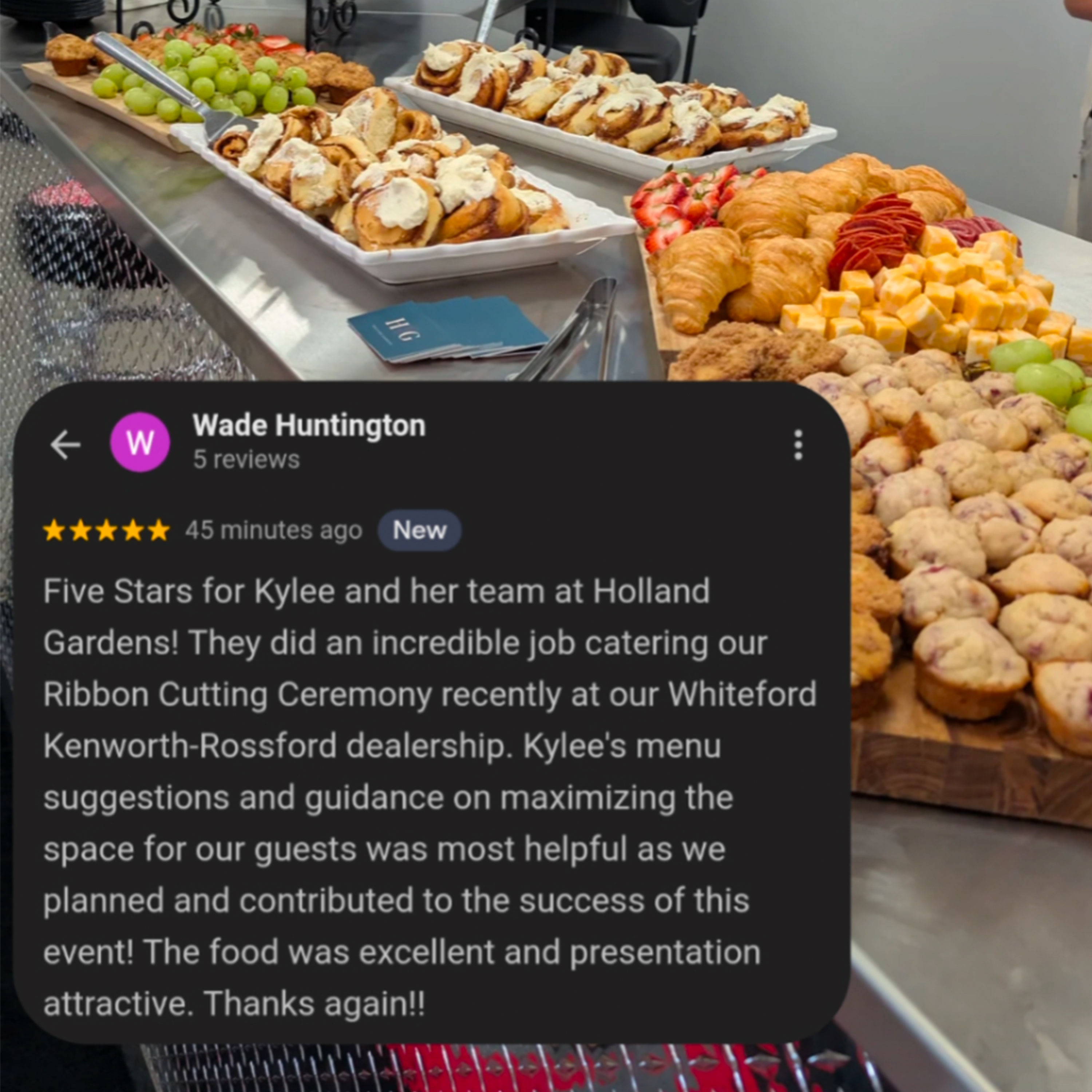 One of our featured catering partners is Holland Gardens, known for their exceptional menus,